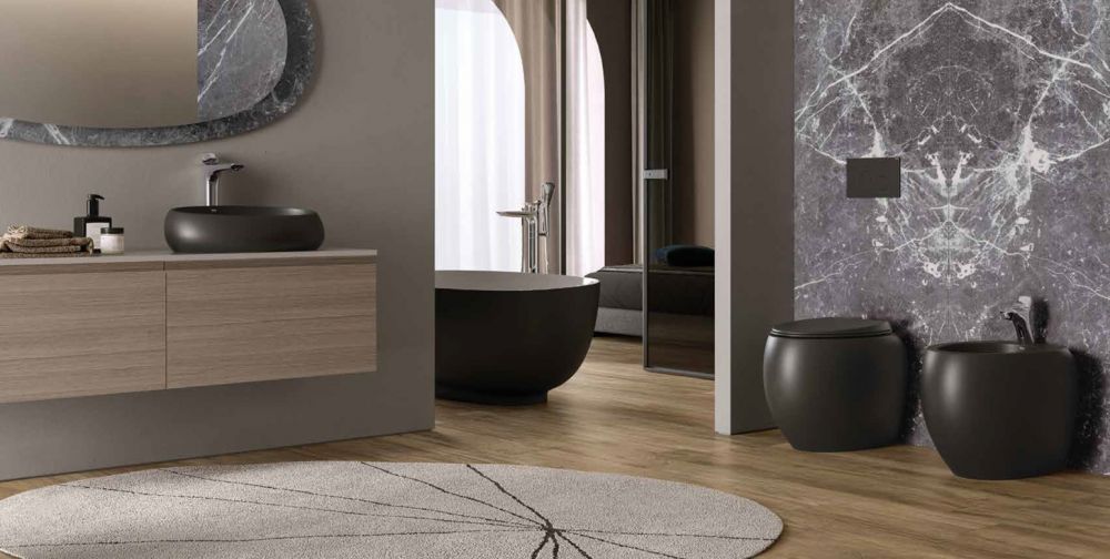 COPPIA SANITARI SOSPESO RIMLESS DA 56 CM. NERO OPACO