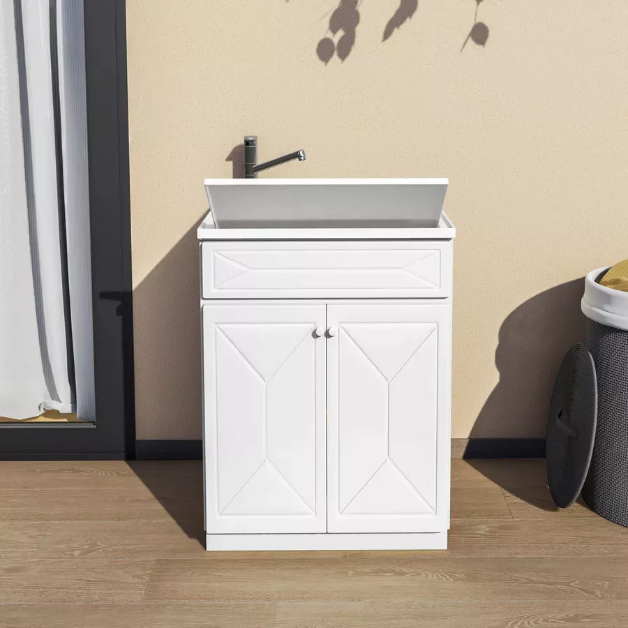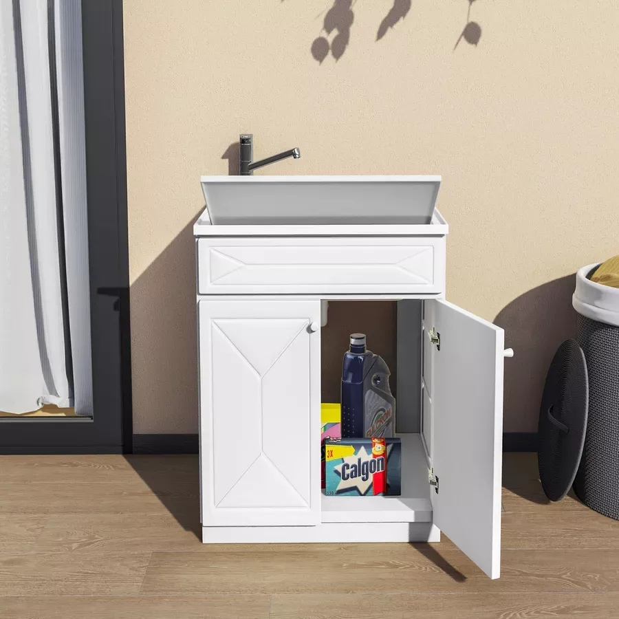 Mobile 60x60 cm lavatoio con due ante lavello e asse lavapanni bianco