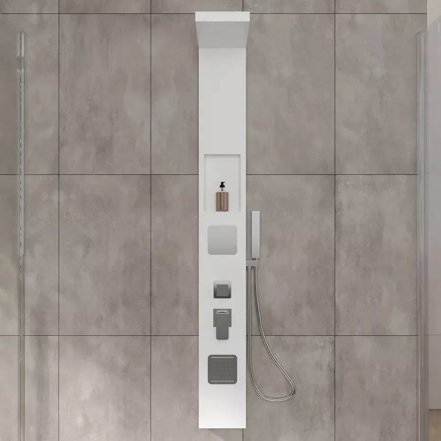 Pannello doccia alluminio con getti idromassaggio e doccetta bianco