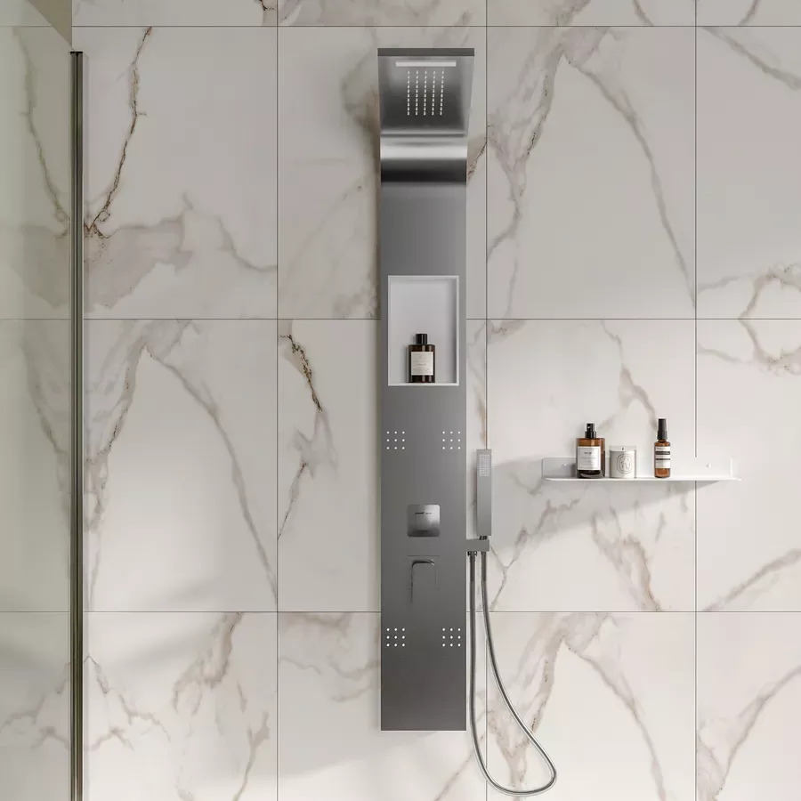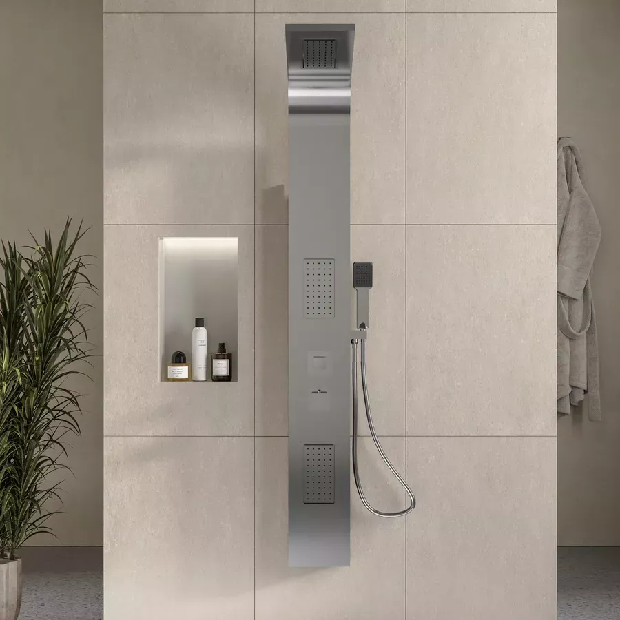 Pannello doccia alluminio silver con doccetta cromata e getti idromassaggio