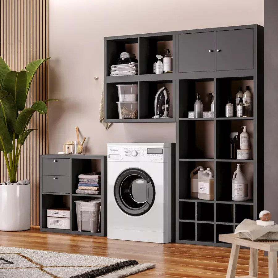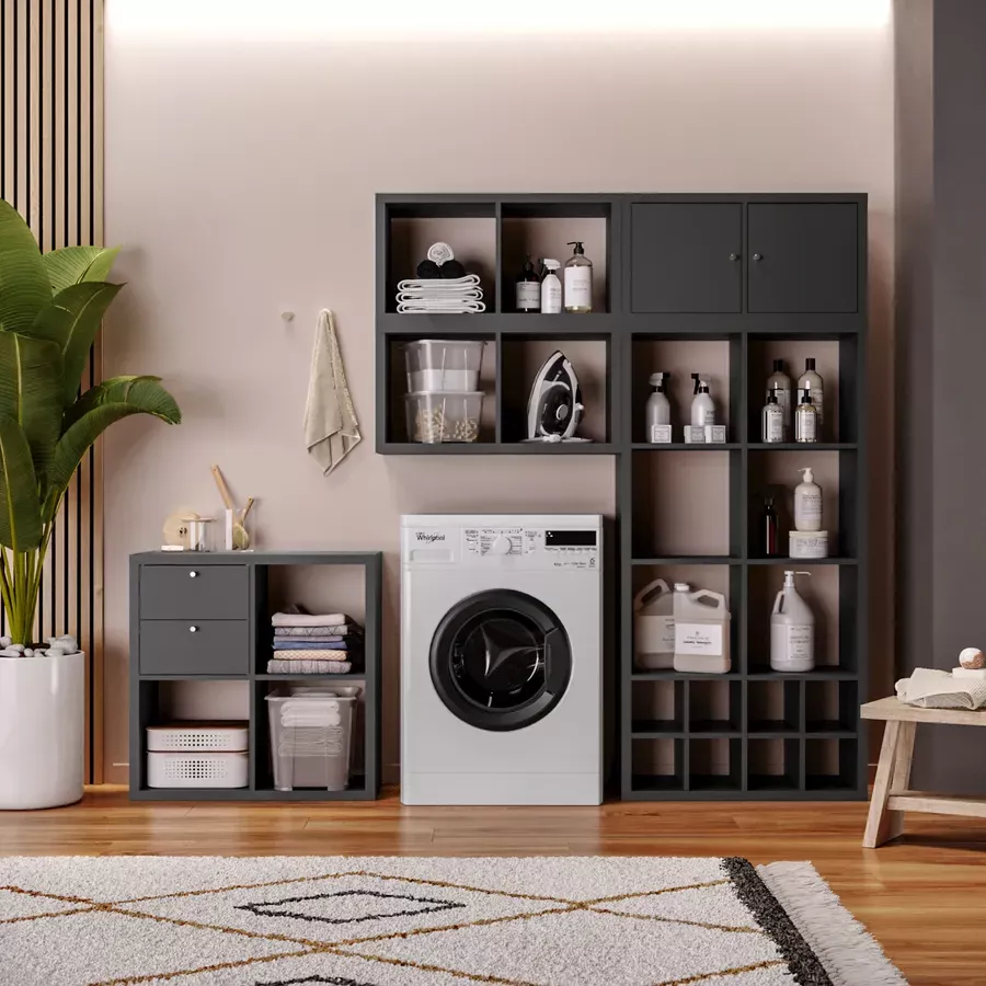 Mobile multiuso lavanderia 255 cm modulare e reversibile antracite - Tactik