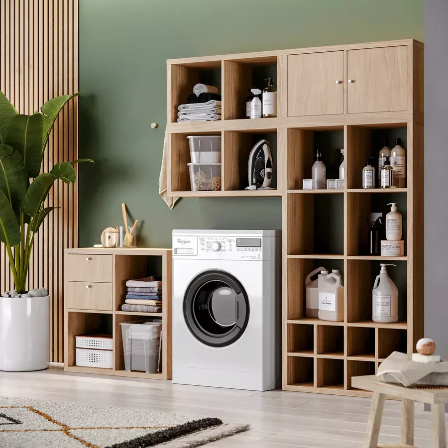 Mobile multiuso lavanderia 255 cm modulare e reversibile rovere - Tactik