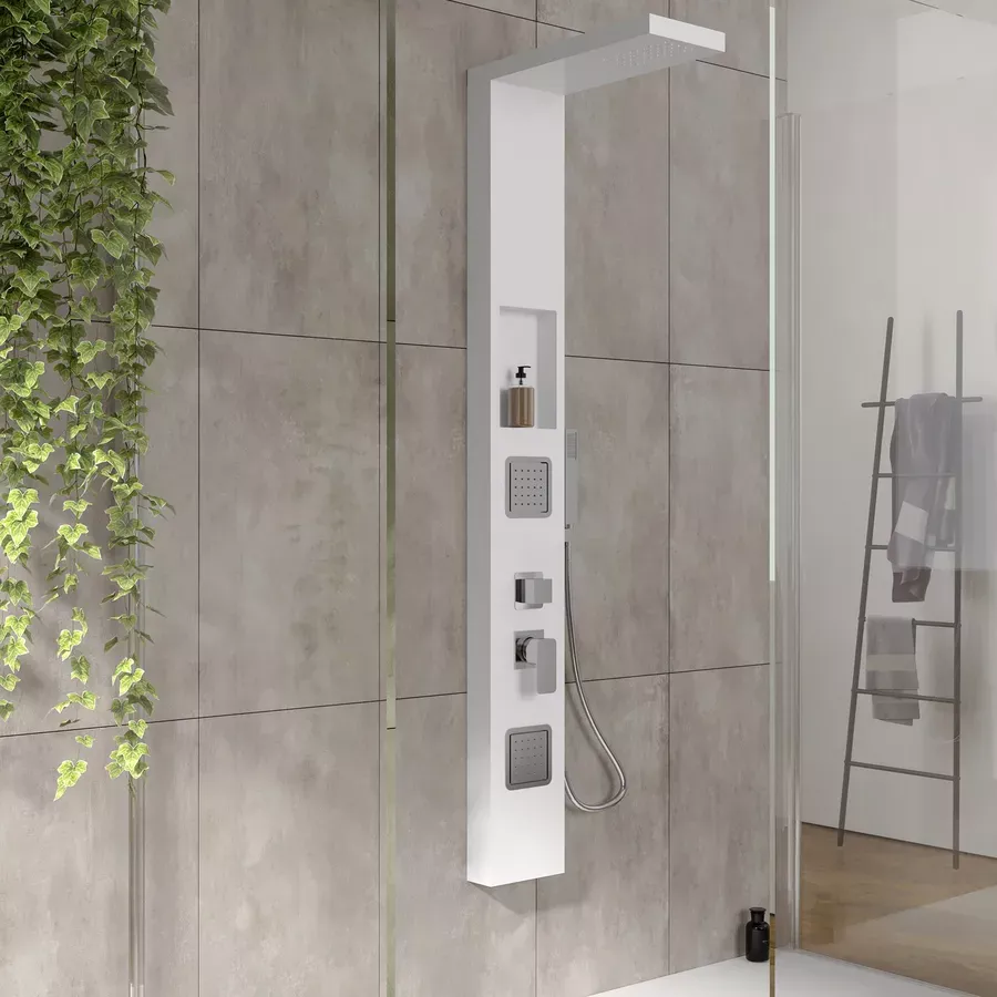 Pannello doccia alluminio con getti idromassaggio e doccetta bianco