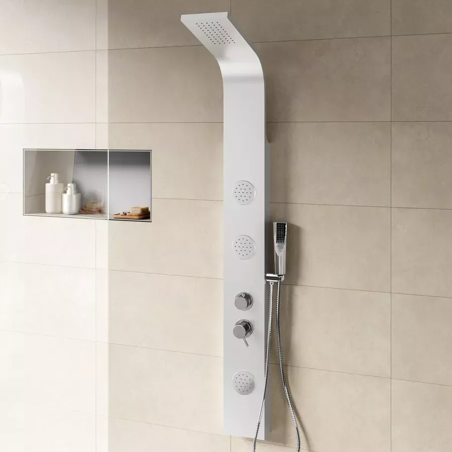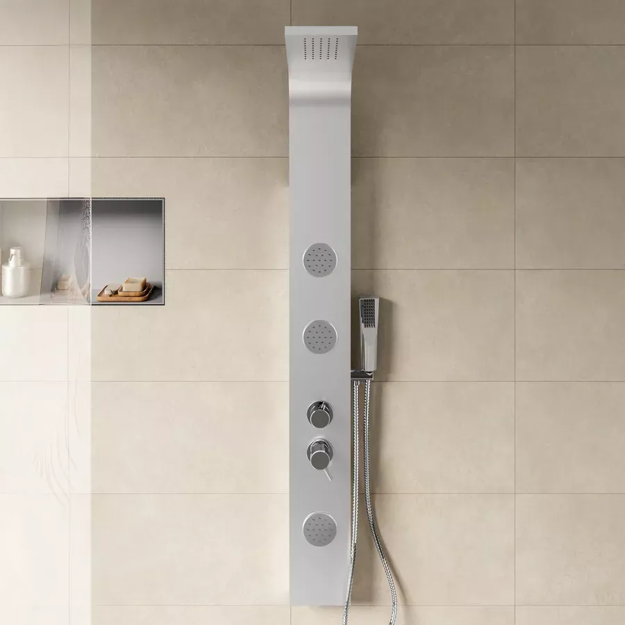 Pannello doccia alluminio silver con doccetta cromata e getti idromassaggio