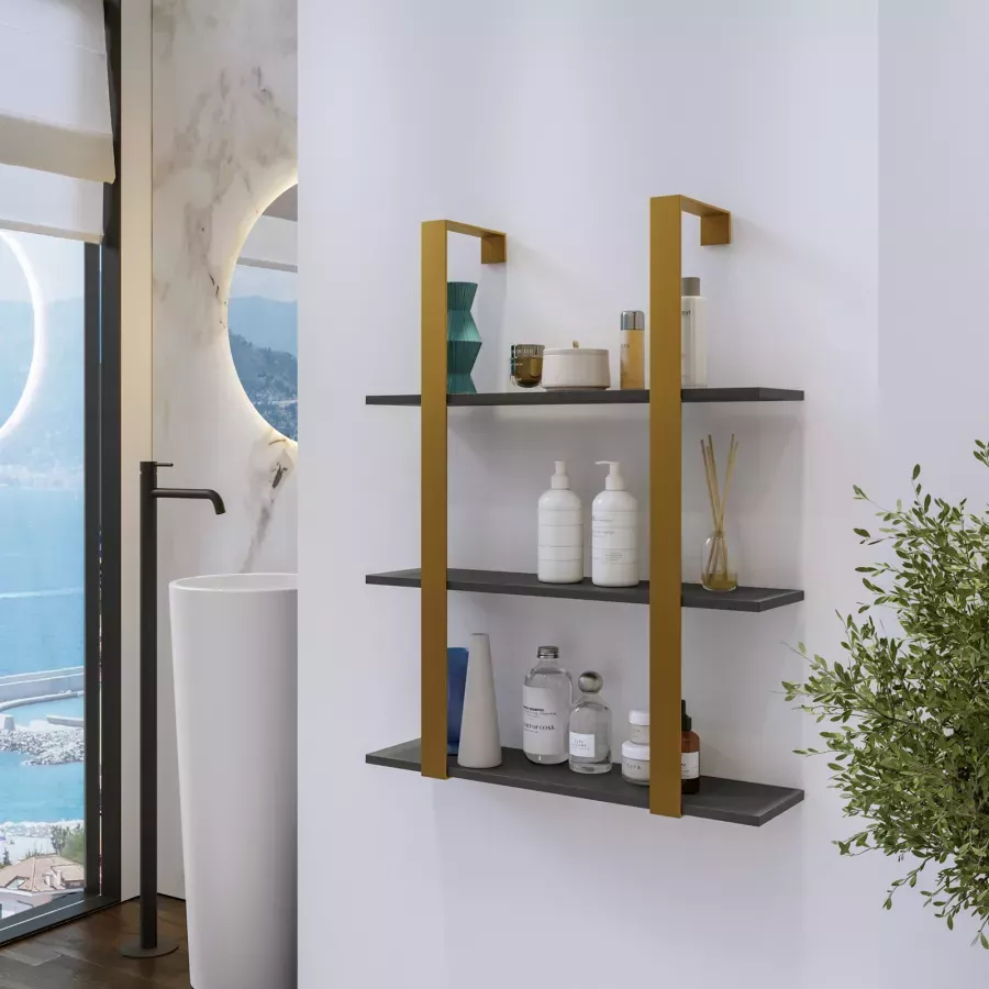 Pensile bagno 70x90 h cm in acciaio oro e mensole antracite - Multipla